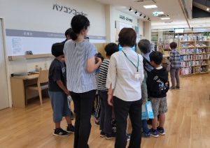 図書館の中にはどんなコーナーがあるのか、どんな工夫がされているのかを見学しながらいろいろ学びました!