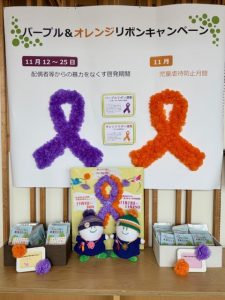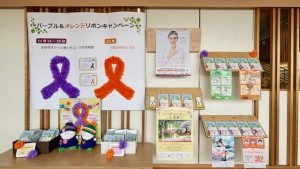 あやテラスのオープンギャラリーにて、「パープル・オレンジリボンキャンペーン」の展示を開催しています。
