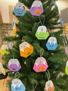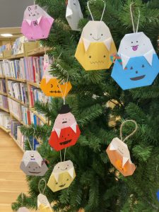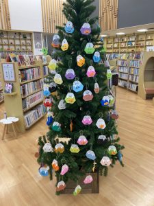 図書館の木に、おさかなさんたちが泳ぎに来たみたいですよ!