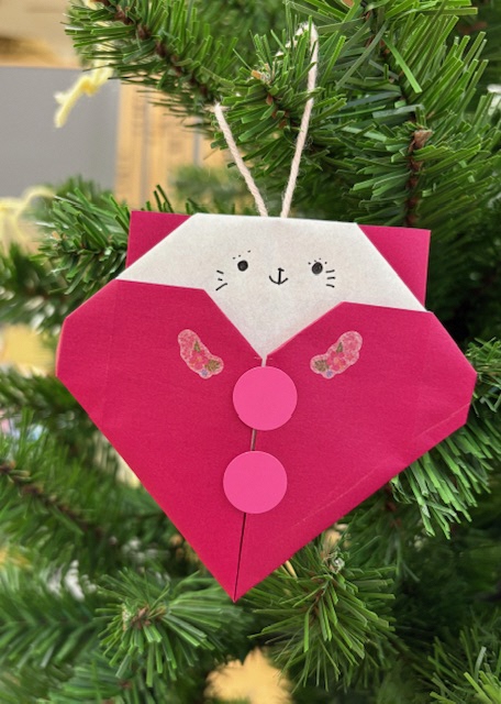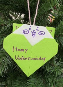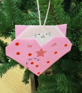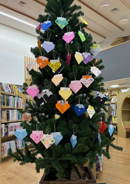 おりがみツリーにかかっているハート❤️のおりがみをよく見ると……