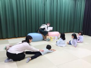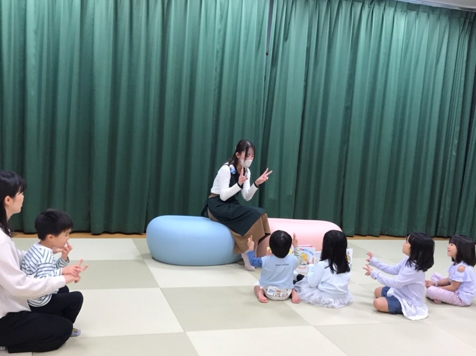 「♪はじまるよ、はじまるよ」と歌いだすと、みんなもいっしょに歌って手遊びしてくれました。