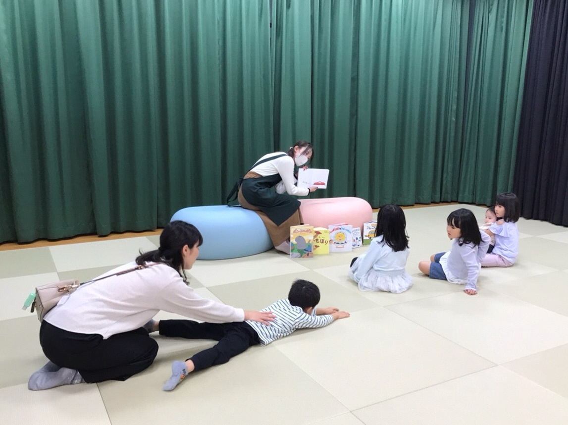 ほかにも「どてっ」とこけたり、「びよ〜ん」と伸びたり、みんなで体を動かして楽しみました。