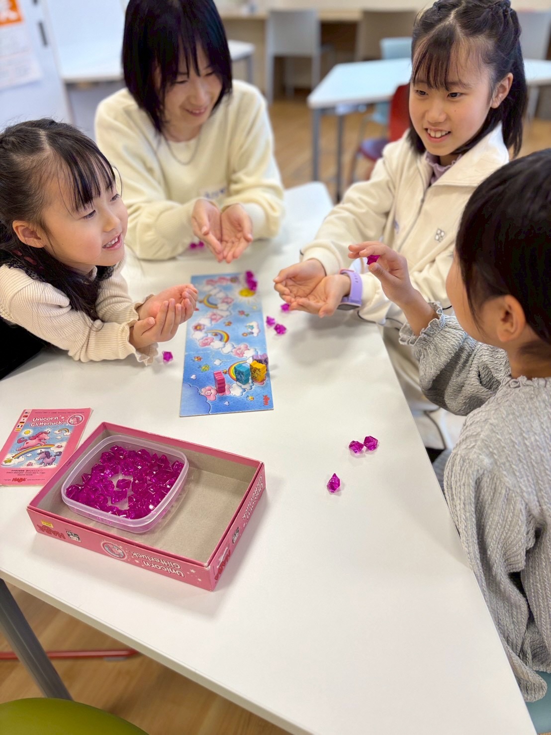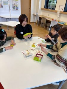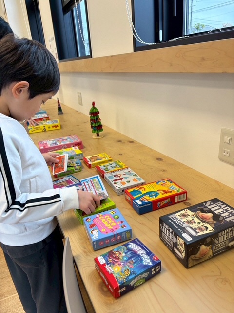 今回も先生はいろいろなボードゲームを持ってきてくれました。運や記憶力が試されるもの、スピードが肝心なもの、どれもおもしろそうです!