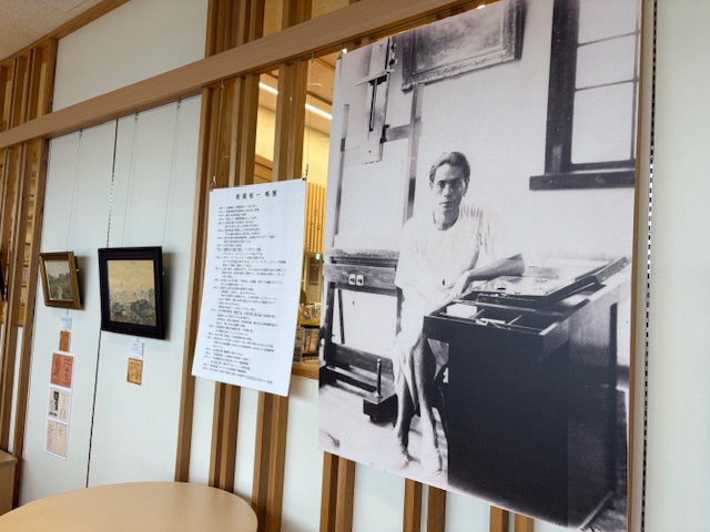 綾部市図書館ではふるさと・あやべの森コーナーにて、綾部市出身の画家、有道佐一さんの作品の展示を行っています。
